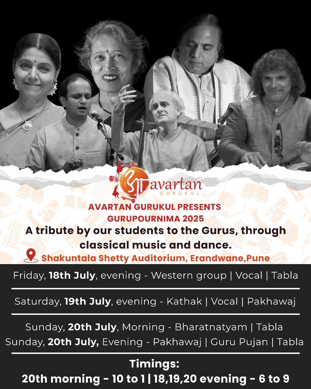 “Āvartan” is a trust with support and contribution from highly respected artistes in India. With Pune as the fulcrum, Āvartan aspires to set up a “Gurukul” with the aim of making inspired artistes and Gurus for the future generations in a sustainable manner.