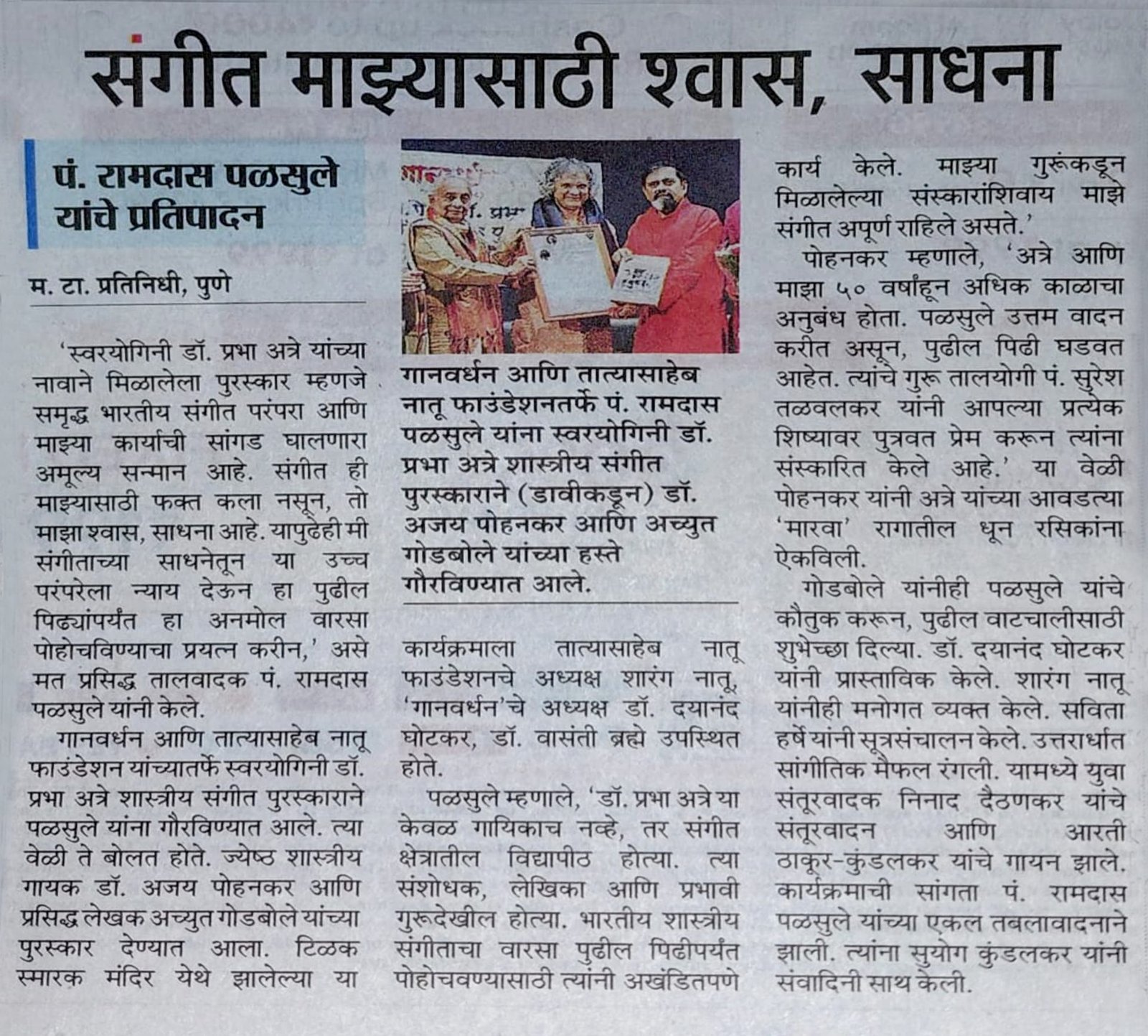 Pt Ramdas Palsule performed during the Ministry of Culture’s program commemorating 150 years of “Vande Mataram”, with Prime Minister Narendra Modi in attendance. His musical